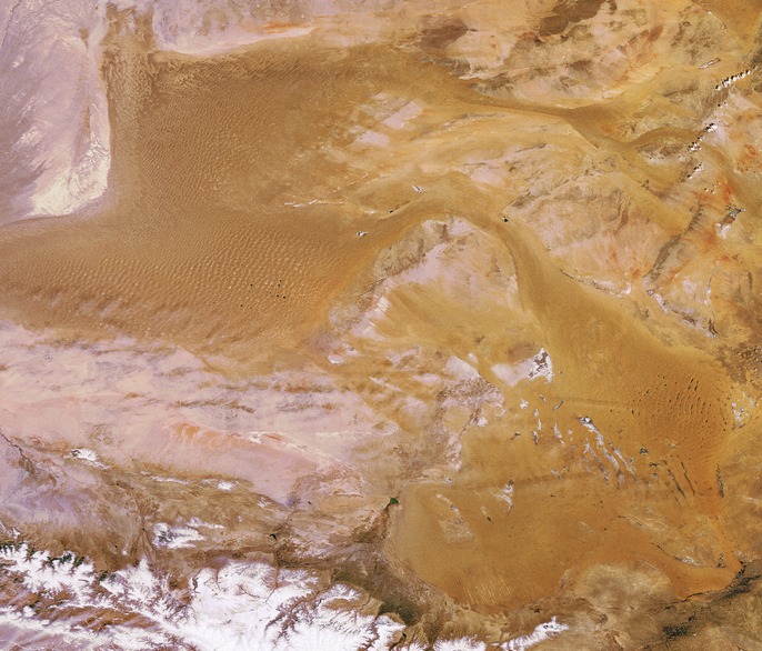 Image satellite (ENVISAT) : Le désert de Gobi (Credit image : ESA)